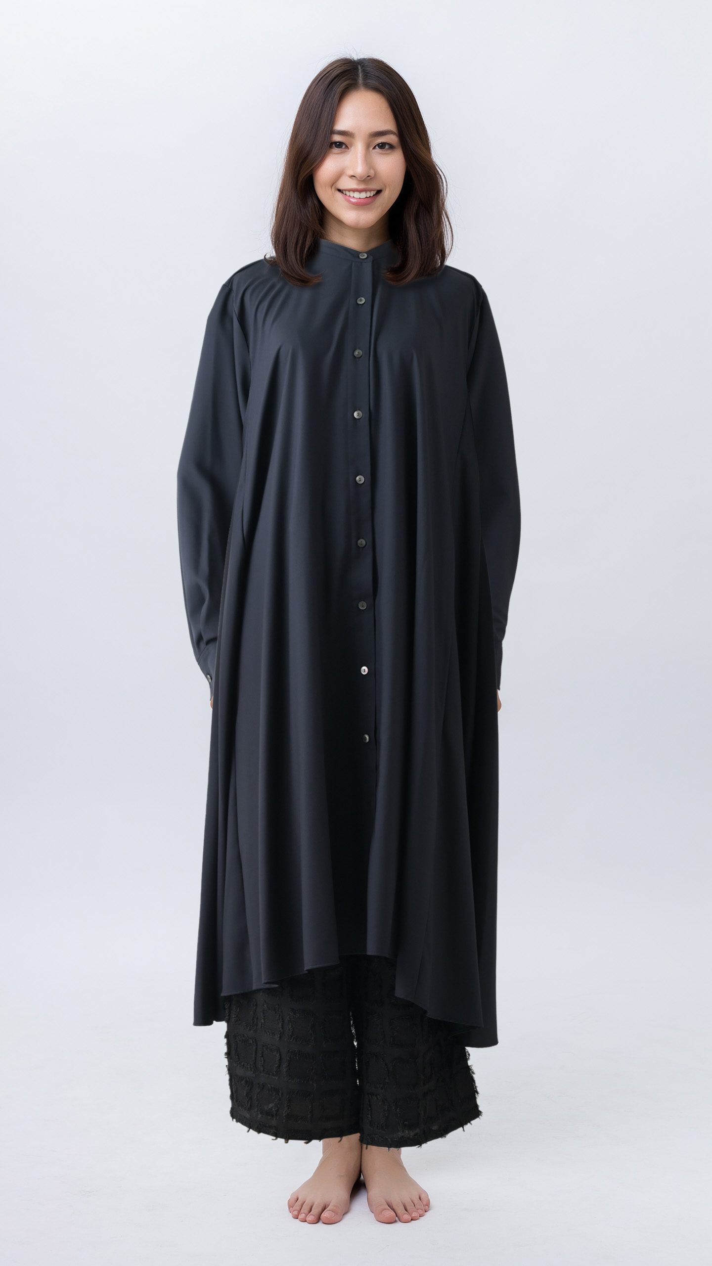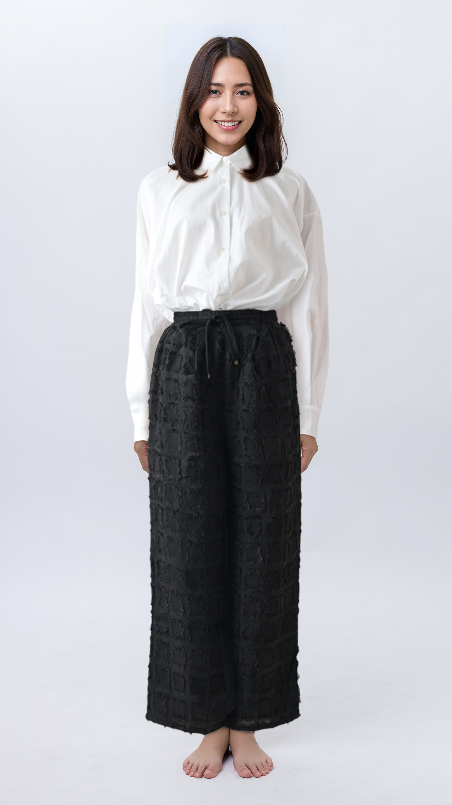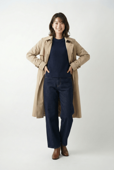 実在しないモデルをAIで生成し、ブランドの世界観に合わせて着用ビジュアルを制作します。表情・骨格・ヘア・スタイル・ポージングまで調整し、EC掲載に適した自然な質感・陰影・シルエットを実現。モデル撮影のコストや日程調整が不要になり、新作投入や色展開にもスピーディーに対応できます。