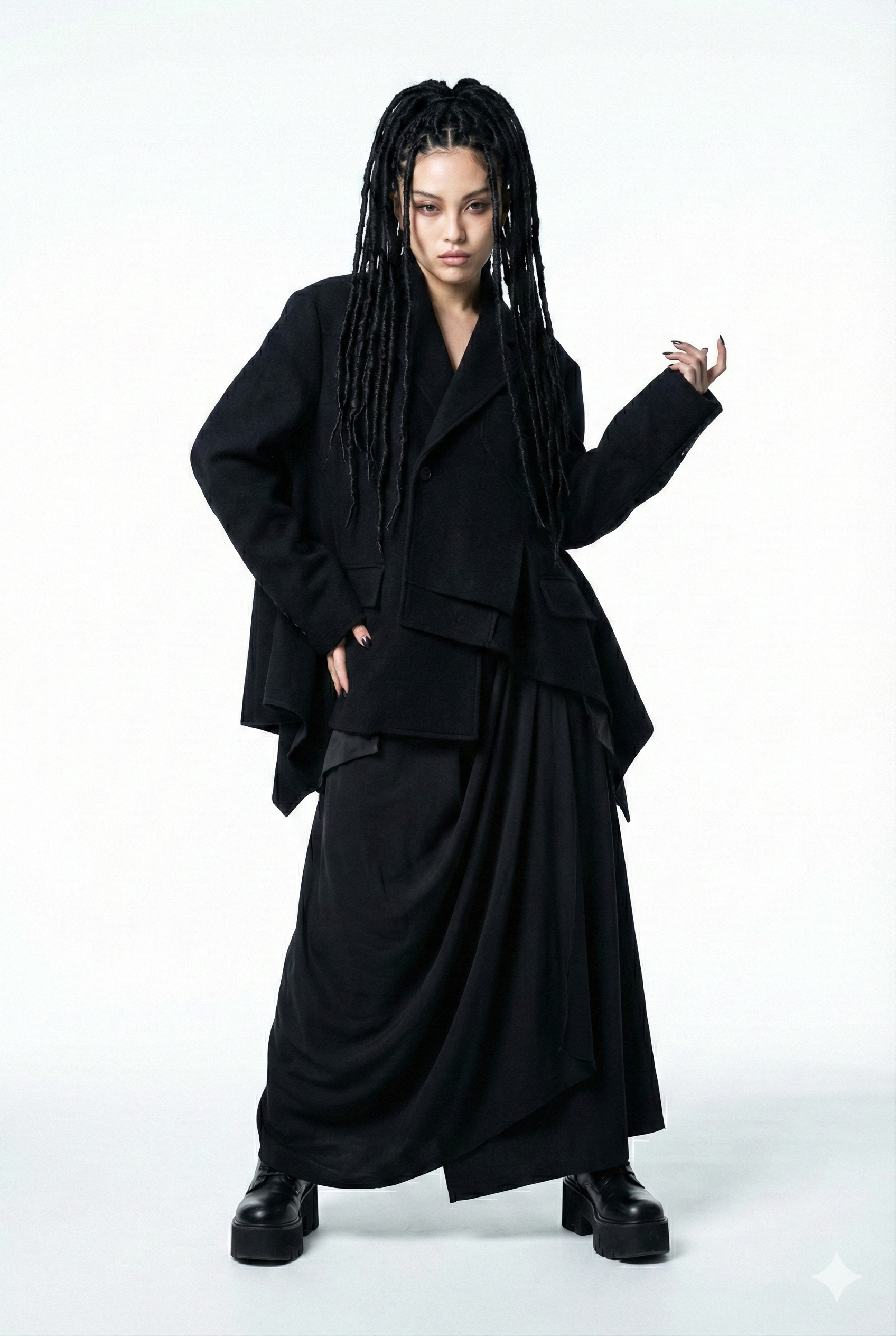 一般的なAI生成とは異なり、アパレル商品を魅せるためのモデル生成・ポージング・表情設計に特化しています。骨格・ポーズ・光の方向・素材の落ち方まで精緻にコントロールし、ECでも違和感のない、自然で“着たくなる”ビジュアルを追求します。